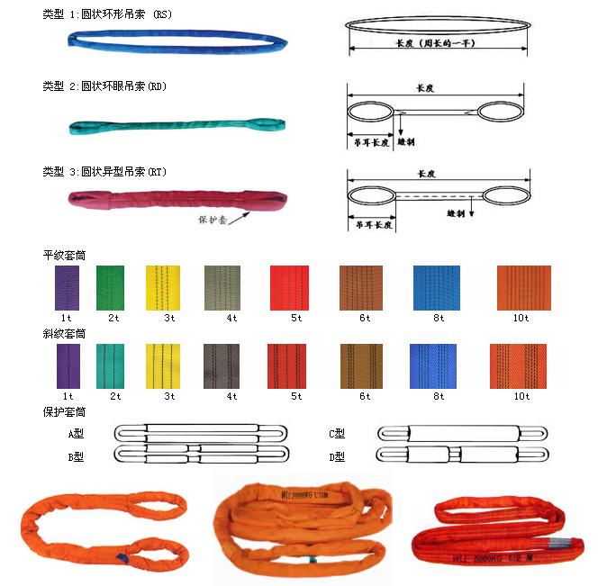 柔性吊帶用于配合吊鉤等起重吊裝物體,可以適用于多種吊裝條件下的物體起吊,它既有高強(qiáng)度,又能夠不傷害物體表面,既輕便又柔軟,可以多種組合的使用方式。 制造材料:100%PES 工作溫度:-40℃-100℃ 強(qiáng)度范圍:1t-300t 安全系數(shù):6 彈性伸長:額定載荷<3% 斷裂載荷下<10% 載荷識別:在使用過程中吊帶上所標(biāo)噸位,可通過吊帶外套上的顏色識別承載重量 標(biāo)準(zhǔn):國際標(biāo)準(zhǔn)ISO04878 歐洲標(biāo)準(zhǔn)EN1492-2 長度:按照客戶要求。